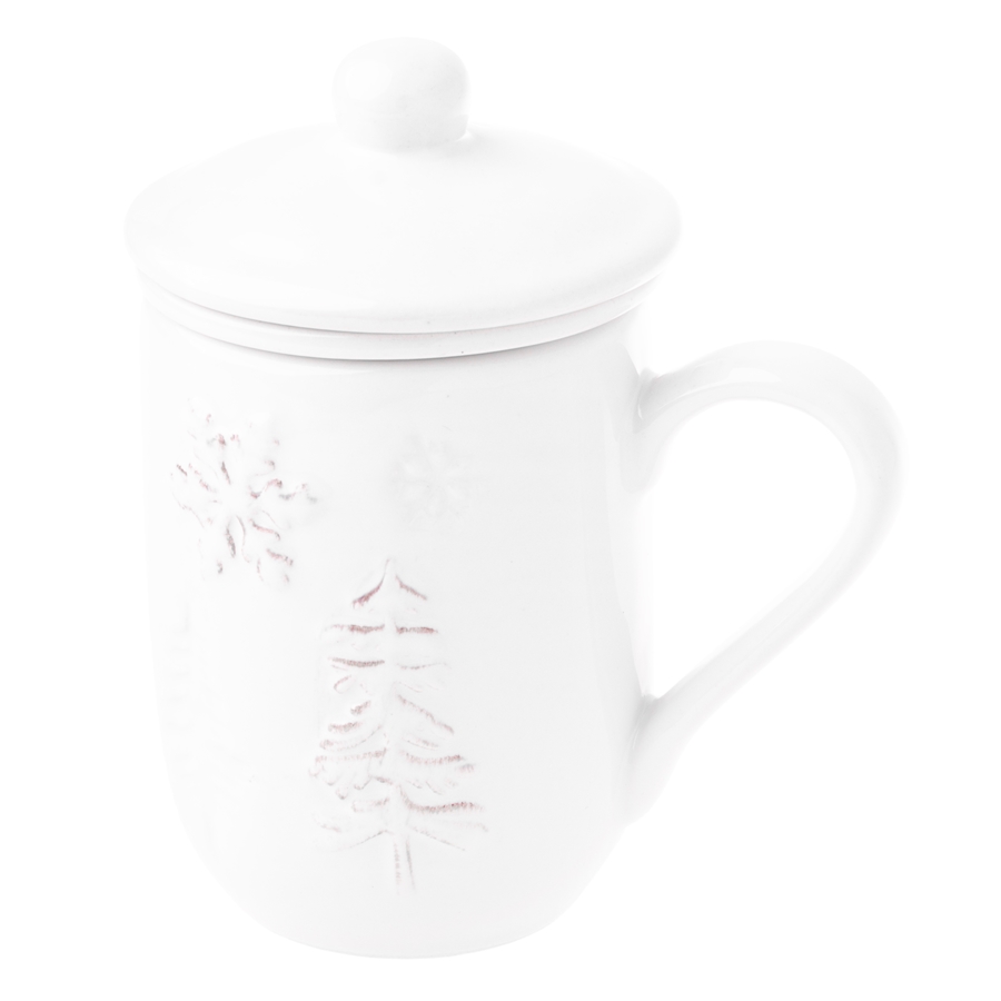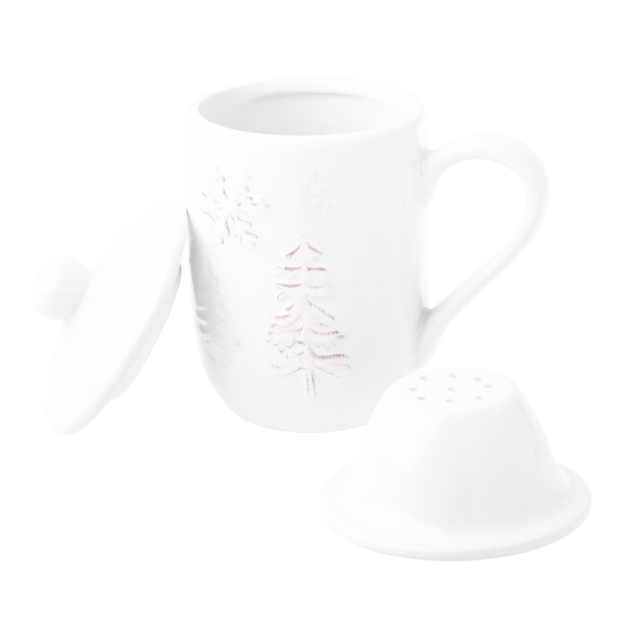 FANNAR Kubek z zaparzaczem – 320 mlKubek z zimowym motywem, biały niczym śnieg to idealny towarzysz chłodnych poranków. Wykonany z solidnej ceramiki, z pojemnością 320 ml i wygodną rączkę – w sam raz na gorącą herbatę przy choince.