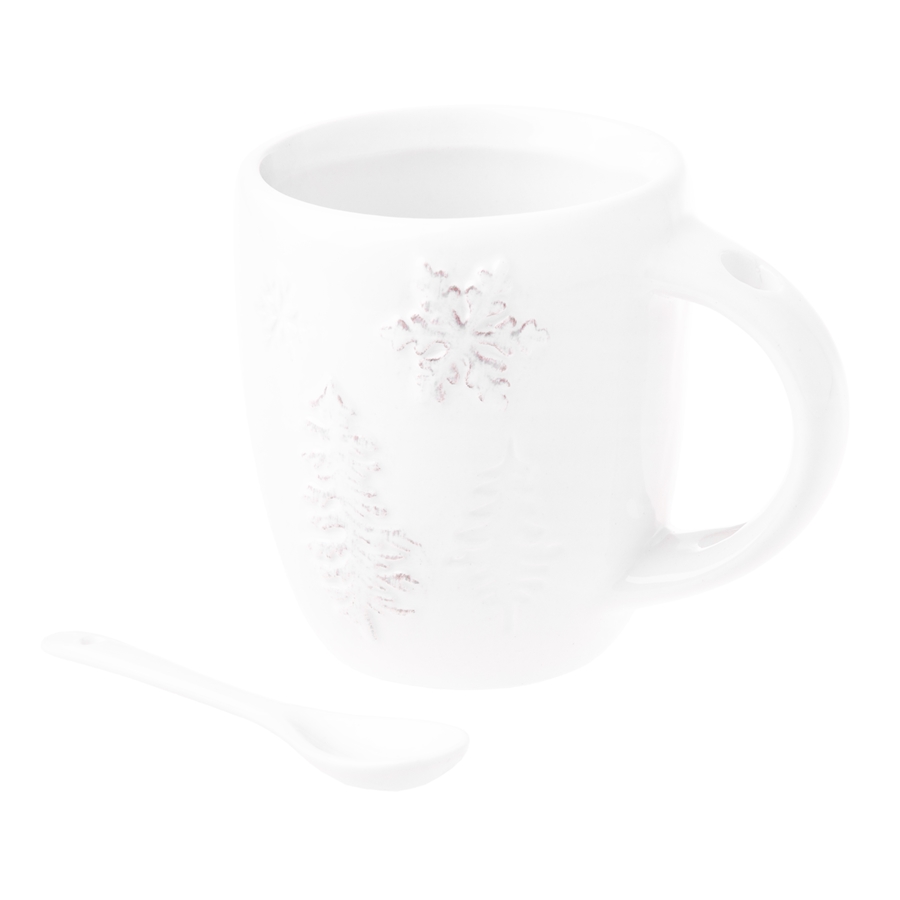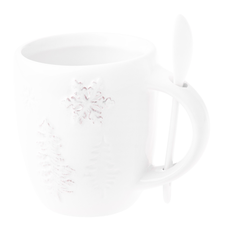 FANNAR Kubek z łyżeczką – 260 mlKubek z zimowym motywem, biały niczym śnieg. Wykonany z solidnej ceramiki, posiada wygodny uchwyt z praktycznym miejscem na dołączoną łyżeczkę – idealny na prezent i codzienną dawkę ciepła.
