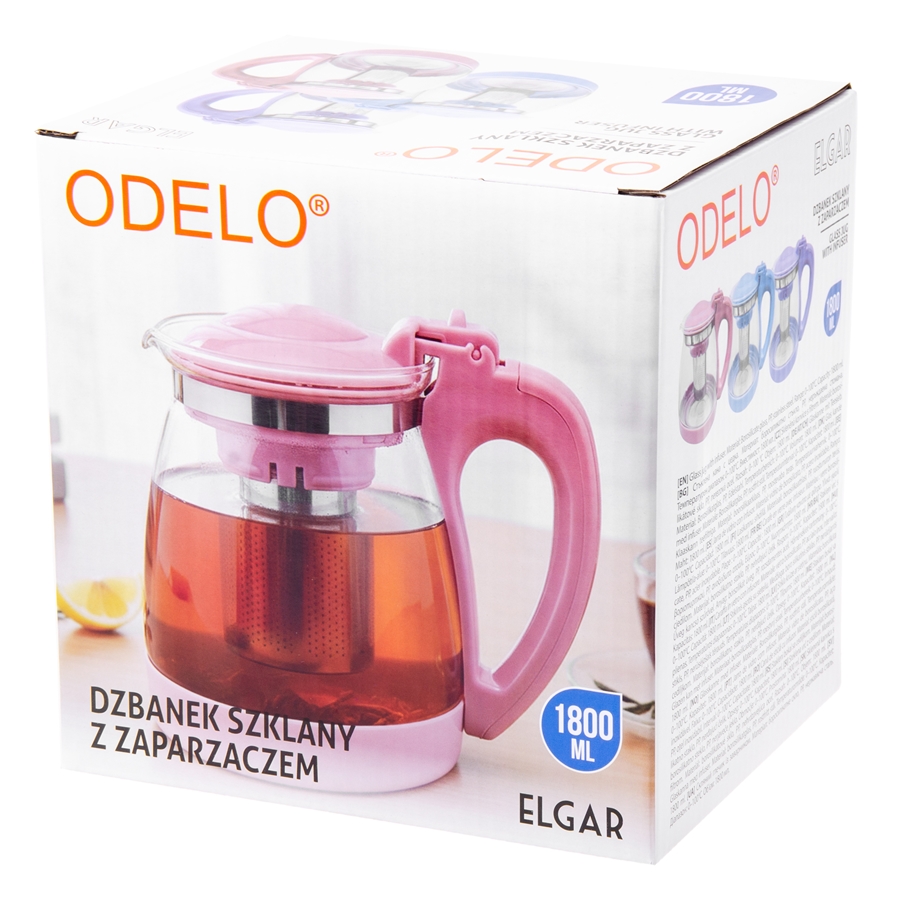 Dzbanek ODELO ELGAR szklany z zaparzaczem różowy 1800ml 1szt.