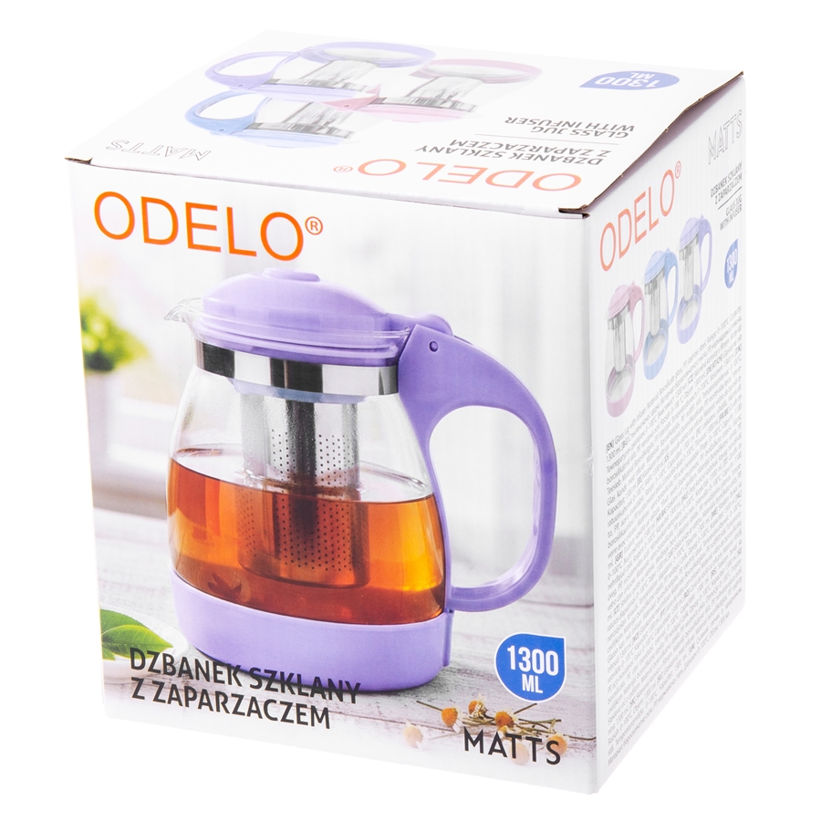Dzbanek ODELO MATTS szklany z zaparzaczem różowy 1300ml 1szt.