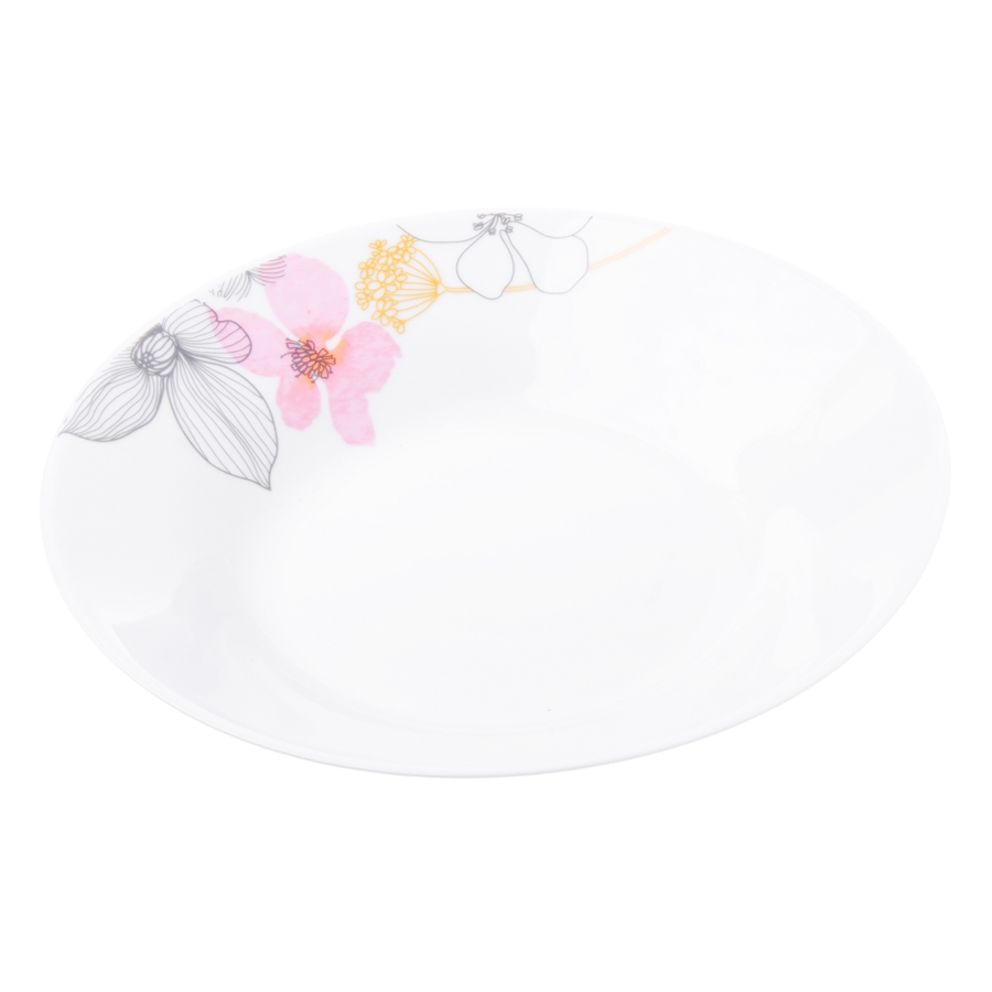 Talerz głęboki ETIENNE Elegancki talerz głęboki wykonany z porcelany, ozdobiony wysokiej jakości nadrukiem odpornym na mycie w zmywarce. Idealny do zup, makaronów i dań jednogarnkowych. Przystosowany do użycia w kuchence mikrofalowej.