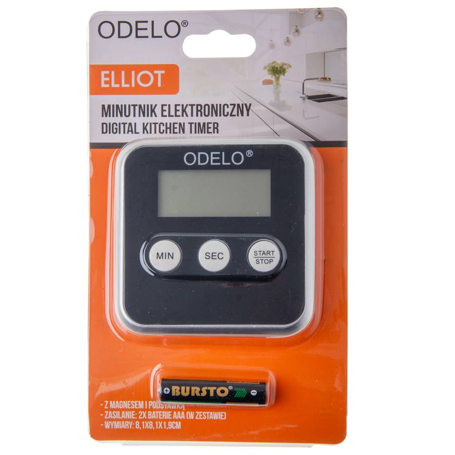 Minutnik ODELO ELLIOT czarny 81x81x19mm 1xAAA 1szt.