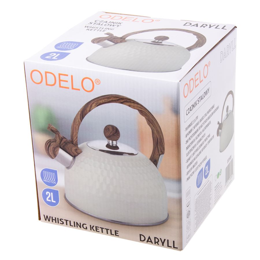 Czajnik stalowy ODELO DARYLL 2,0L kremowy z drewnianą rączką 1szt.