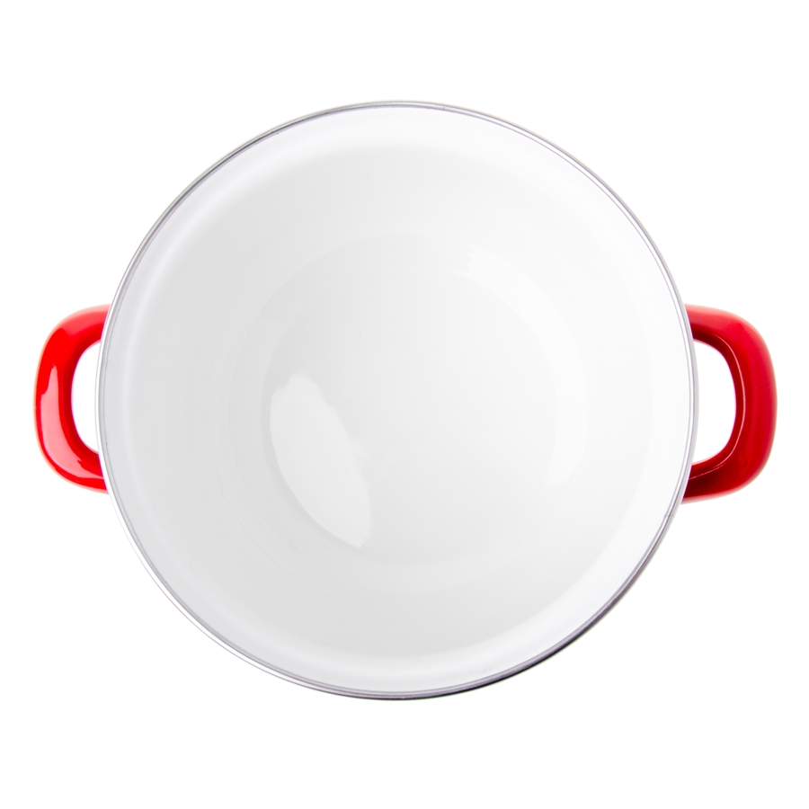 Garnek KROPKI – baryłka Garnek emaliowany KROPKI to praktyczne naczynie do codziennego gotowania. Wykonany ze stali i pokryty trwałą powłoką emaliowaną, skutecznie chroni przed korozją i pasuje do szerokiej gamy kuchenek. Czerwony kolor oraz kropki dodają mu wyjątkowego charakteru, a stalowa pokrywka (również pokryta emalią) i pojemność 2,8 L (średnica 18 cm) sprawiają, że świetnie sprawdzi się w każdej kuchni.