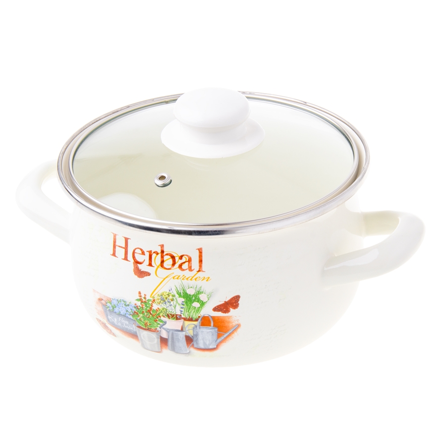 Garnek emaliowany ODELO ZIOŁA baryłka 16cm 2,1l kremowy 1szt.