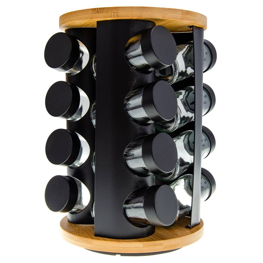 Wszystkie produkty objęte są gwarancją producentaObrotowy stojak na przyprawy – elegancja i funkcjonalność w Twojej kuchni Utrzymaj porządek wśród przypraw dzięki stylowemu, obrotowemu stojakowi wykonanemu z trwałej stali, szkła i naturalnego drewna. Stojak zawiera 16 szklanych pojemników z hermetycznymi nakrętkami, które chronią aromat przypraw na dłużej. Praktyczna obrotowa konstrukcja ułatwia szybki dostęp do ulubionych przypraw, a elegancki design doskonale komponuje się z nowoczesnymi i klasycznymi wnętrzami kuchennymi. Idealny wybór dla miłośników gotowania, którzy cenią sobie zarówno estetykę, jak i wygodę.